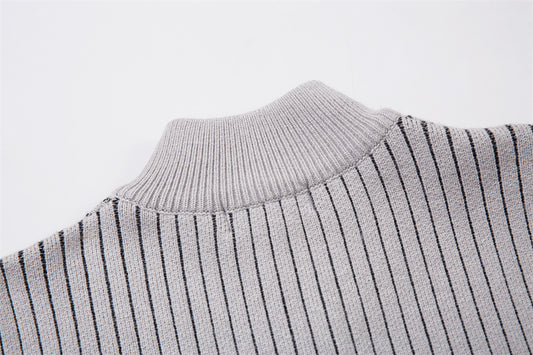 Halloy™ Casual Retro Striped Zipped Stand Collar Sweater