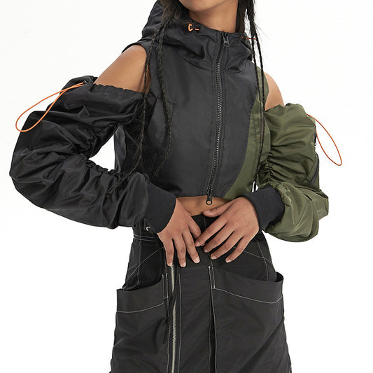 Halloy™ Four-Color Panel Detachable Biker Jacket & Skirt