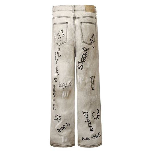 Halloy™ Hand-painted Graffiti Printing Jeans